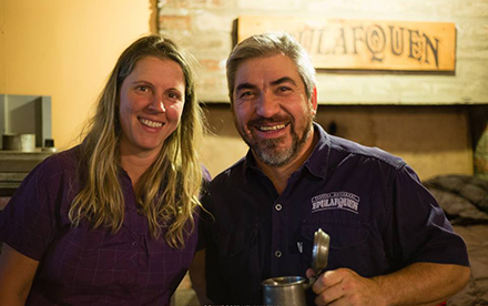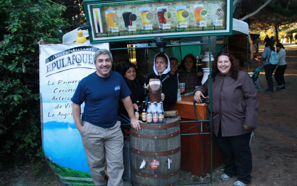 Allá por 1998, en Buenos Aires ya cocinaba “su” cerveza en cacerolas para tomar con amigos. En 1995 le compra el terreno a un amigo sin saber cómo era (ni por fotos lo conocía, confiaba en su amigo). En el verano de 1999 viene a vivirse a Villa La Angostura. Al principio instala su carpa donde hoy está el patio cervecero. De a poco empieza a tomar forma la idea en la cabeza de lo que se iba a proyectar en el lugar. Se suma la Polaca (Mariana) al campamento (puro amor). Empiezan a hacer cerveza para la Fiesta Nacional de los Jardines donde el éxito los alienta a seguir por la senda de la cebada y el lúpulo. En este punto la idea comienza a tomar más cuerpo. Y como es sabido que cada pueblo se identifica por su propia cerveza, por qué no darle a Villa La Angostura su propia Cerveza. En 2001 comienzan a producirse y a envasarse la cerveza artesanal con marca Epulafquen en sus tres variantes: Golden Ale, Pale Ale y Stout. Así nace la primera cerveza artesanal de Villa La Angostura. En 2008, con los restos de un viejo y enorme Coihue que habitaba el predio, comienzan a construir el Patio Cervecero. El 28 de Diciembre de 2009 se festeja la primera fiesta del Patio Cervecero (pregunten por anécdotas). Después del volcán Puyehue viene la explosión Epulafquen. En 2012 se obtiene la licencia para la venta a nivel nacional. En 2013 se agranda el patio cervecero y se agranda la fábrica. Hoy las dos pasiones iniciales siguen intactas: hacer la cerveza que nos gusta y compartirla con amigos.